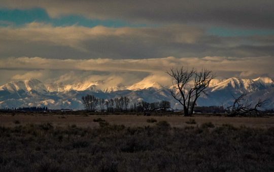 En el Valle de San Luis, al sur de Colorado, las nubes se elevan sobre las imponentes montañas de la...